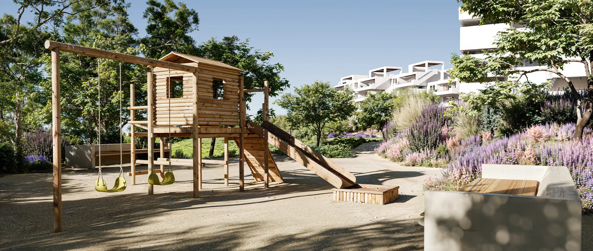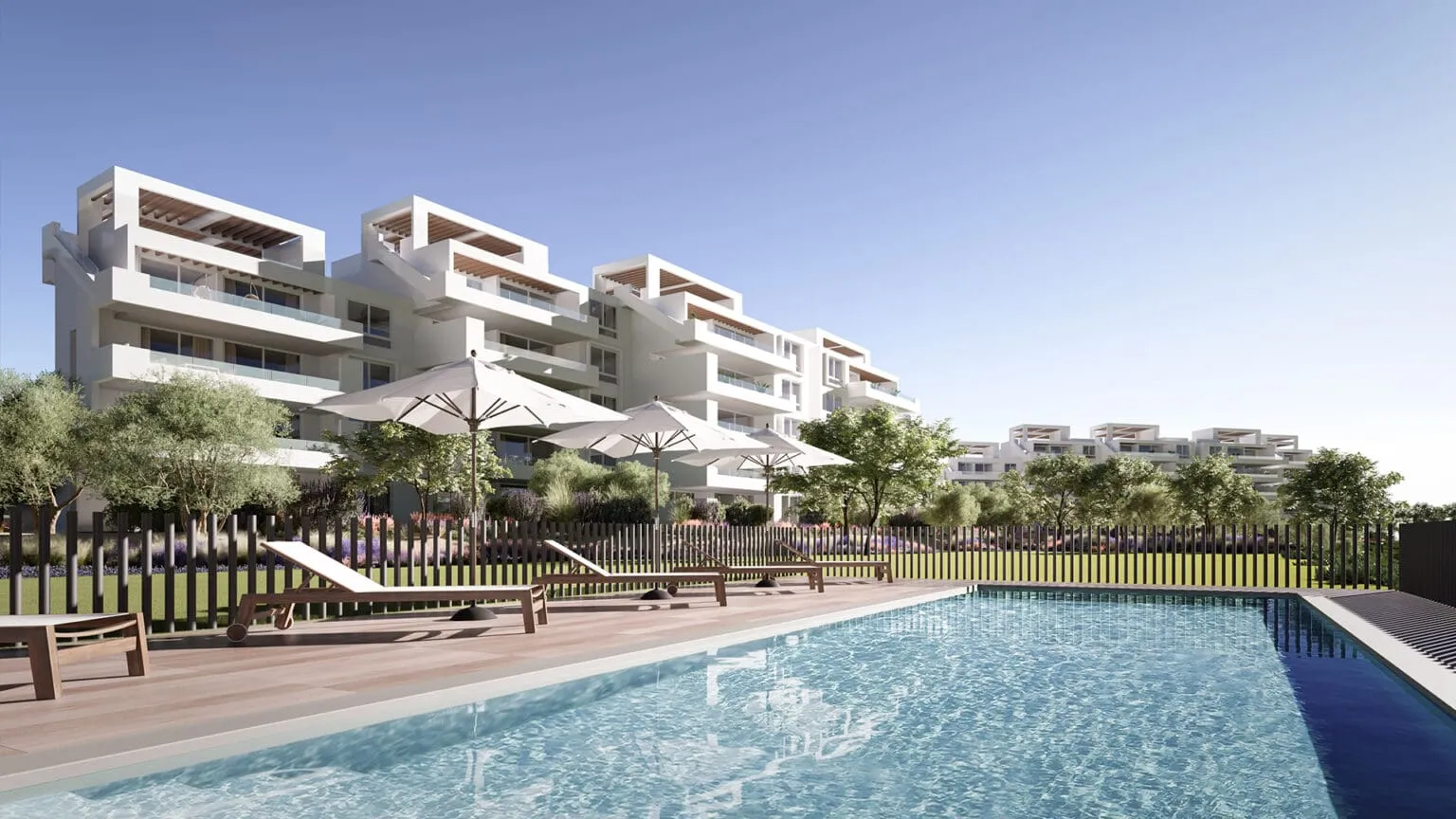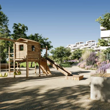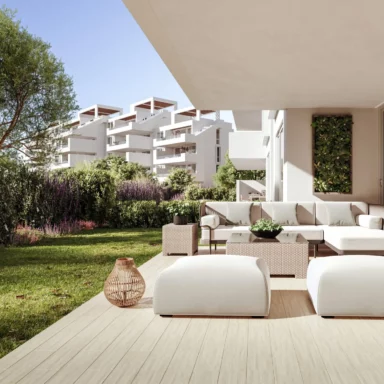Grao Marbella incorpora 2 volúmenes de edificios de sólo 28 departamentos cada uno, los cuales incluyen tipologías con terrazas panorámicas en el último piso y jardín privado en el primer piso. Inspirado en la naturaleza costera, el interiorismo del proyecto toma las texturas y colores que evocan la belleza de la arena, el agua y las rocas.