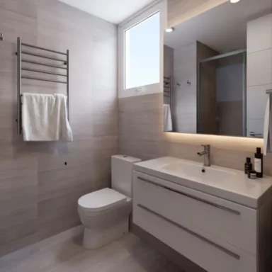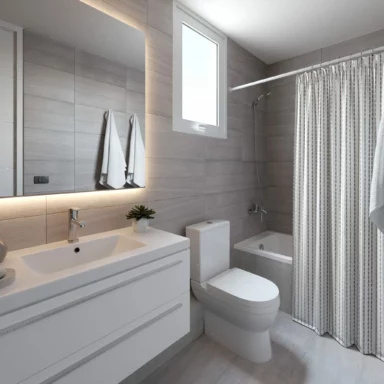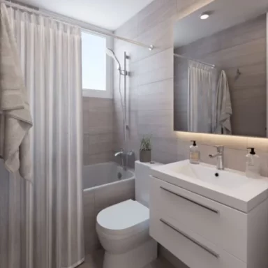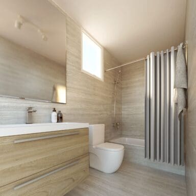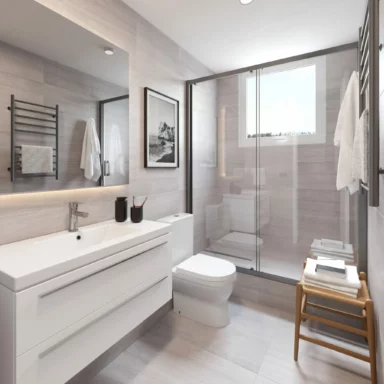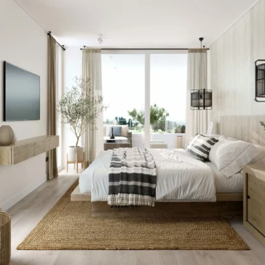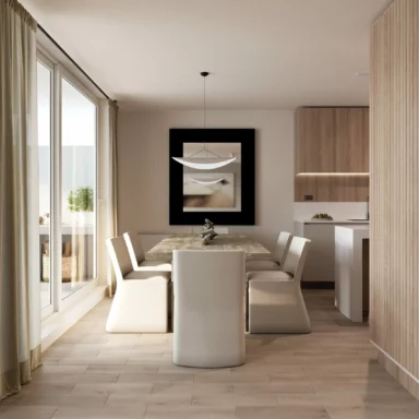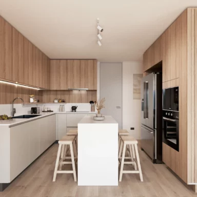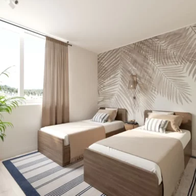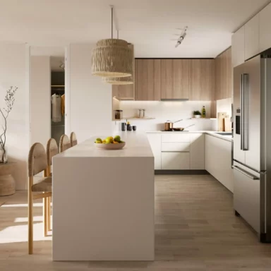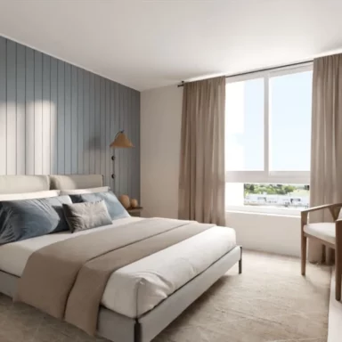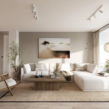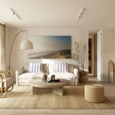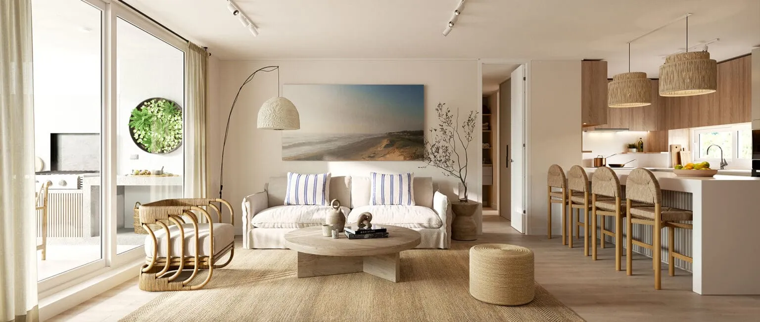 Departamentos de 2 y 3 dormitorios con terminaciones en porcelanato, que mantienen la versatilidad de sus tonalidades que evocan la belleza de la arena, para que cada persona cree su propio espacio, ya sea con un look Boho o contemporáneo.